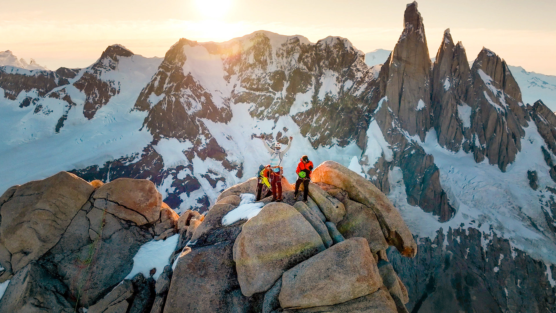 200mts (que parecen más) entre terreno fácil, neveros, hielo, un 6a+ con botas, y mucho cansancio nos llevaron a la cumbre. Esa tan preciada cumbre que se disfrutó muchísimo. Llegué primero, fijé las cuerdas y me senté a apreciar, apreciar la inmensidad, apreciar estar vivo y viviendo la vida, apreciar poder compartir esto con amigos, apreciar estar en donde estaba, apreciar el Torre que con el atardecer en sus espaldas estaba más lindo que nunca, y ese último solcito que secaba las lágrimas de emoción.