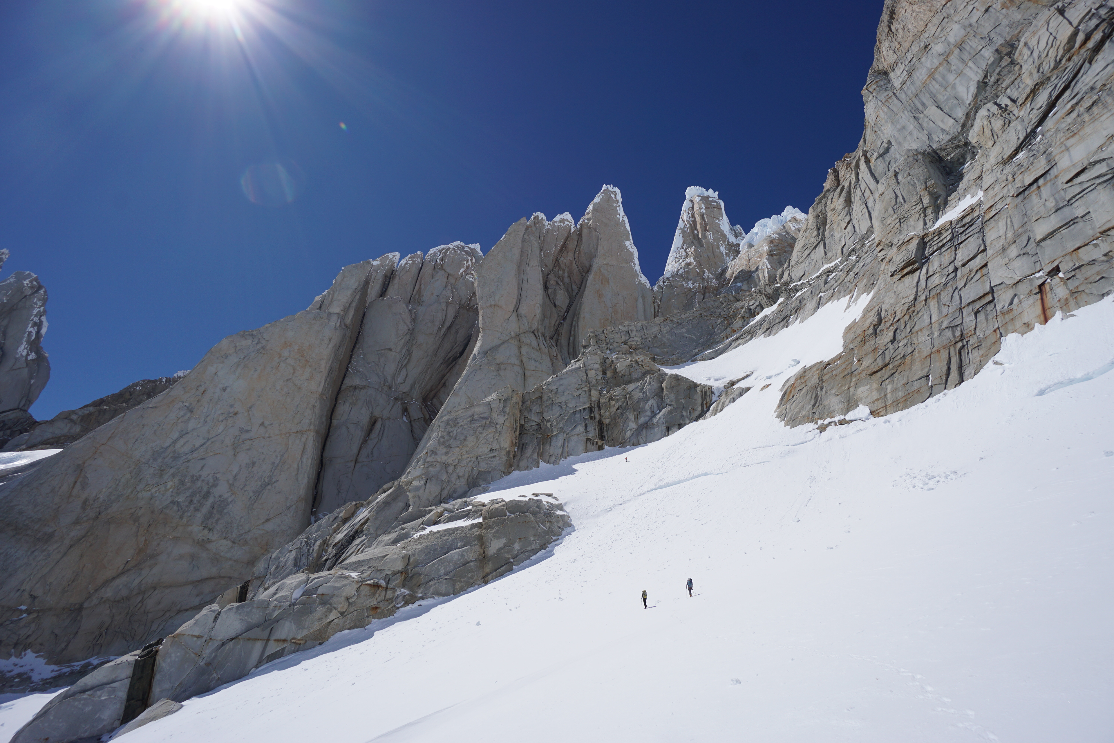 Las distancias en el campo de hielo se vuelvan confusas, lo que parece estar cerca está realmente lejos, pero sólo nos mantenemos en movimiento, un paso tras otro y finalmente llegamos al Circo de los Altares. Este lugar es de los más impresionantes en los que estuve, las torres de granito se alzan desde el campo de hielo como verdaderas catedrales.